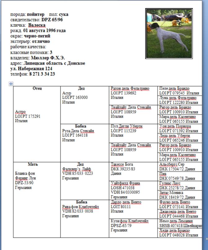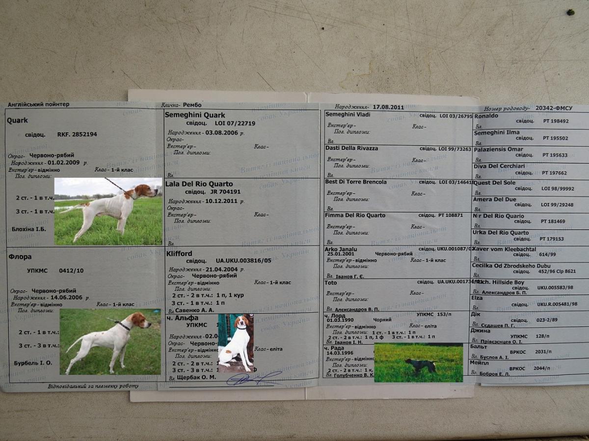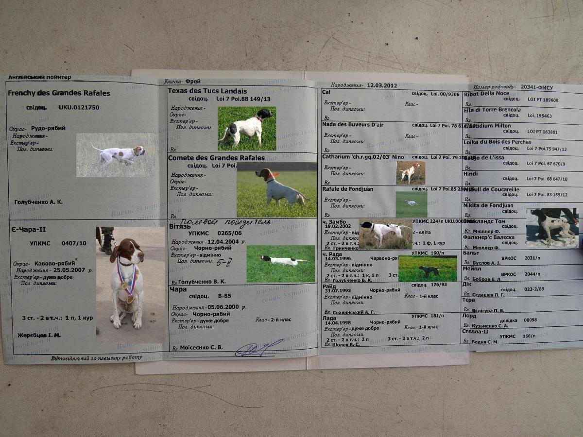 Оля, я продолжу родословную Фрея с последнего колена. 17 лет был председателем секции легавых в Липецке и вел собак Эгона Мюллера.