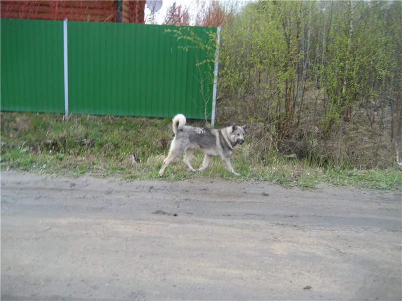 Лен.обл. пос. Матокса (Всеволожский р-он) за Токсово. С начала мая бегает молодой (до года) кобель лайки, волчьего окраса.
