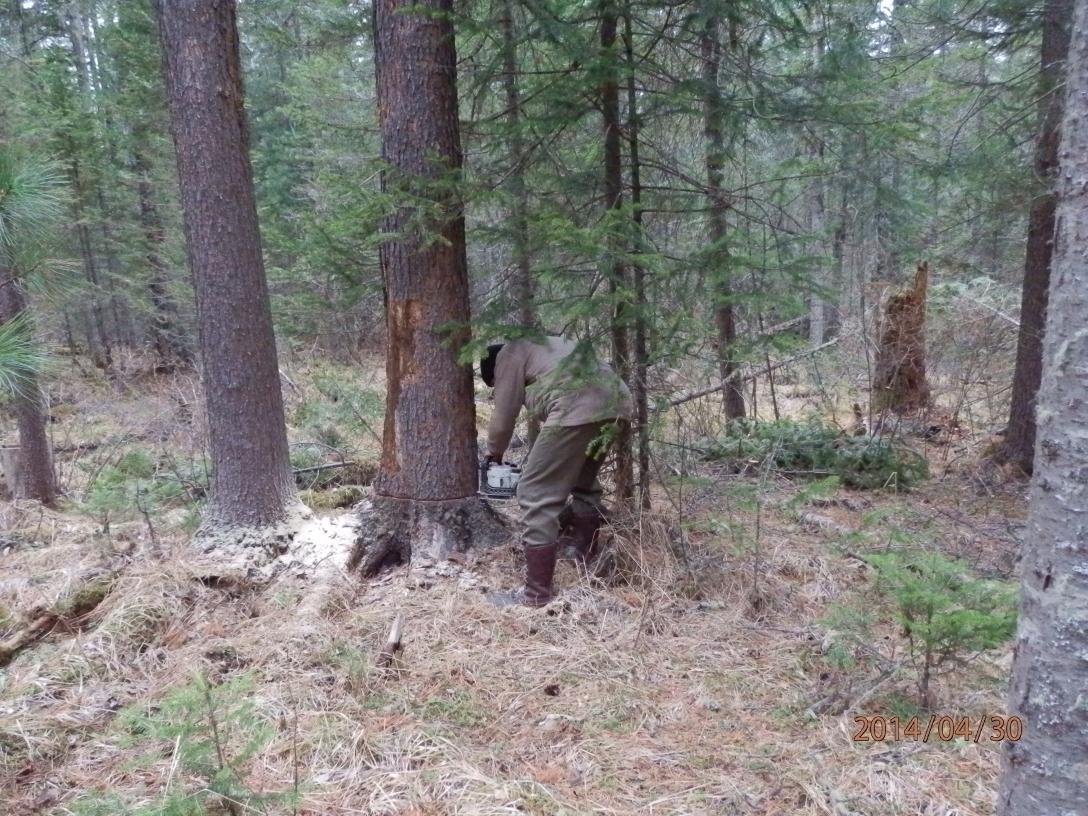 Затем занялись заготовкой дров, потому что предыдущие, непрошеные "гости" пожгли все дрова, правда напилили живой пихты диаметром 150 мм, пришлось валить погибшую сухую кедру.