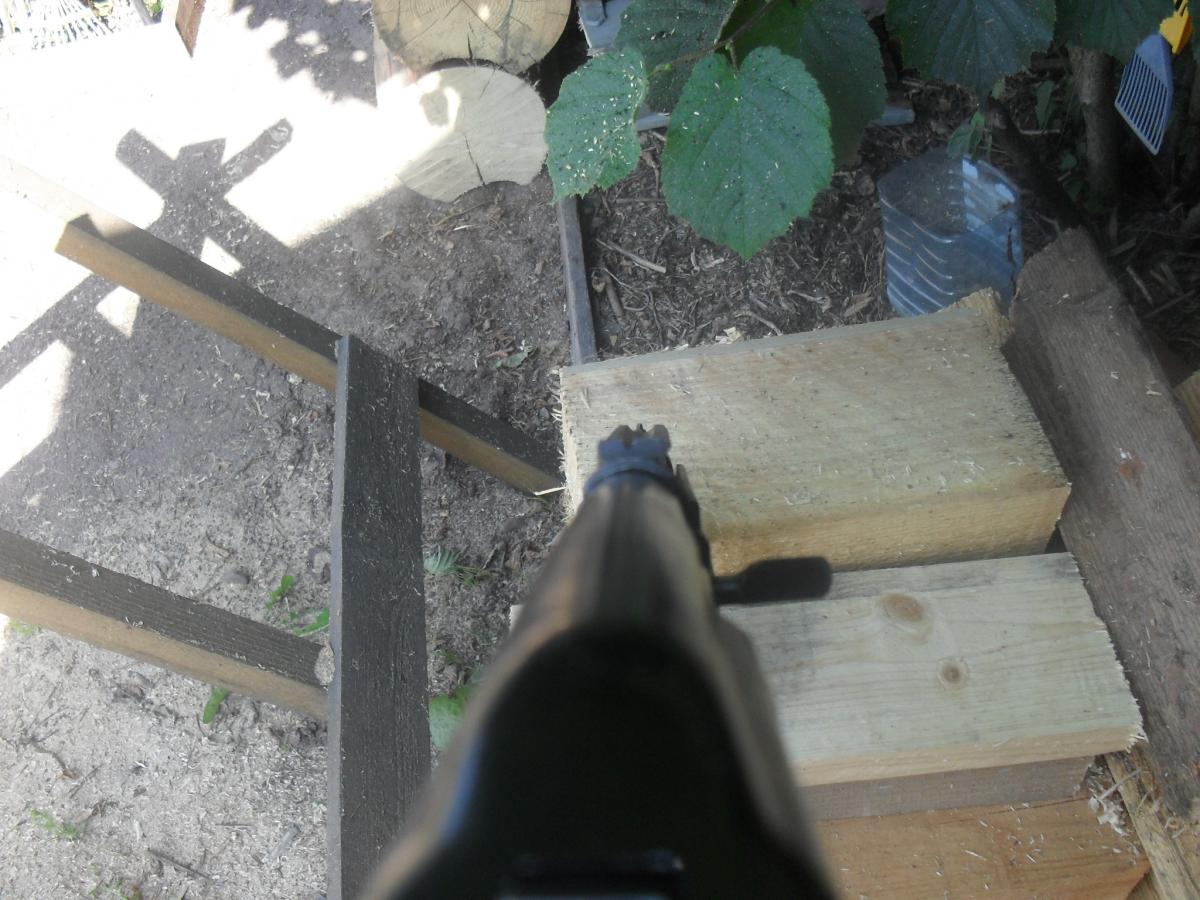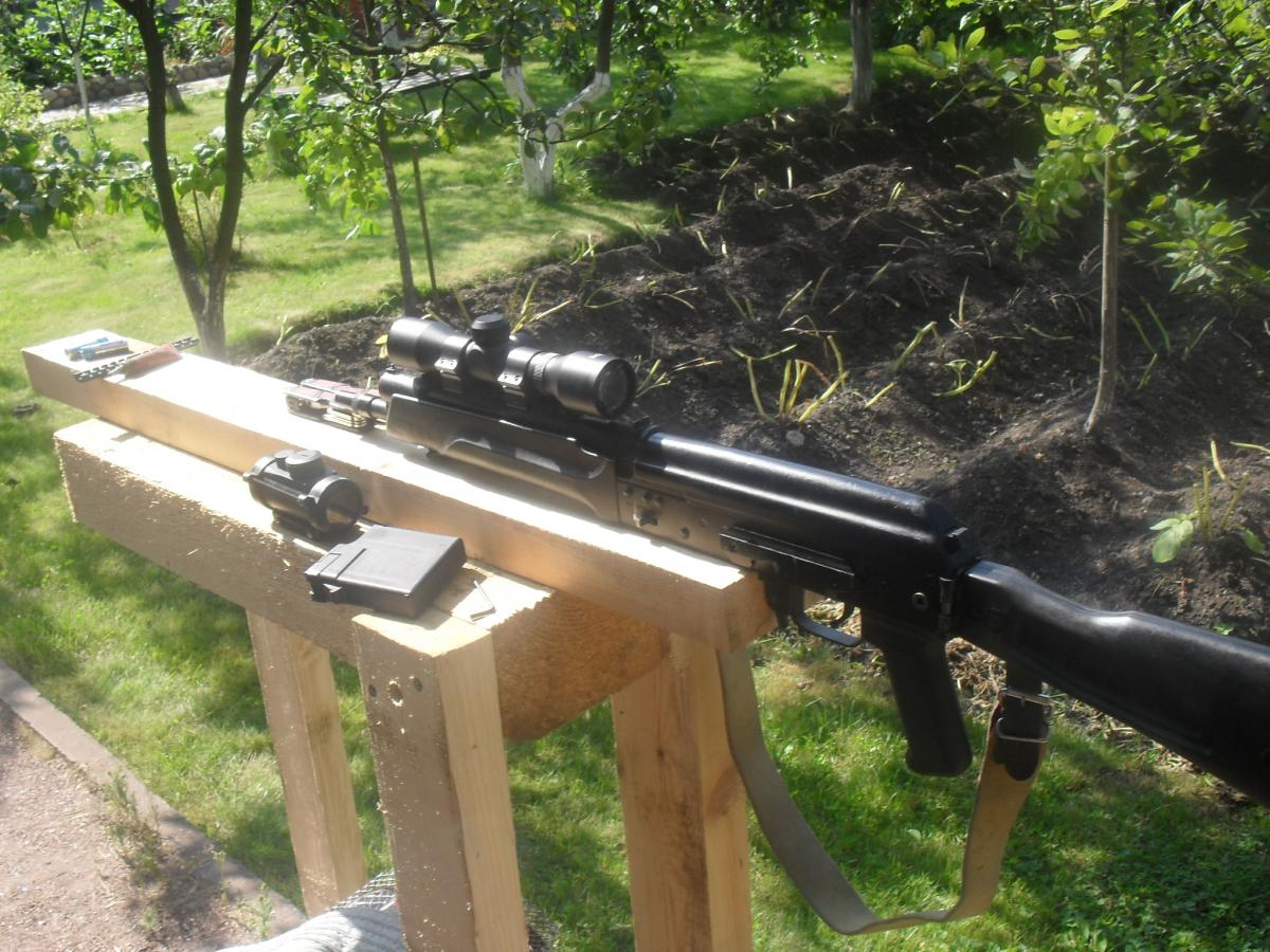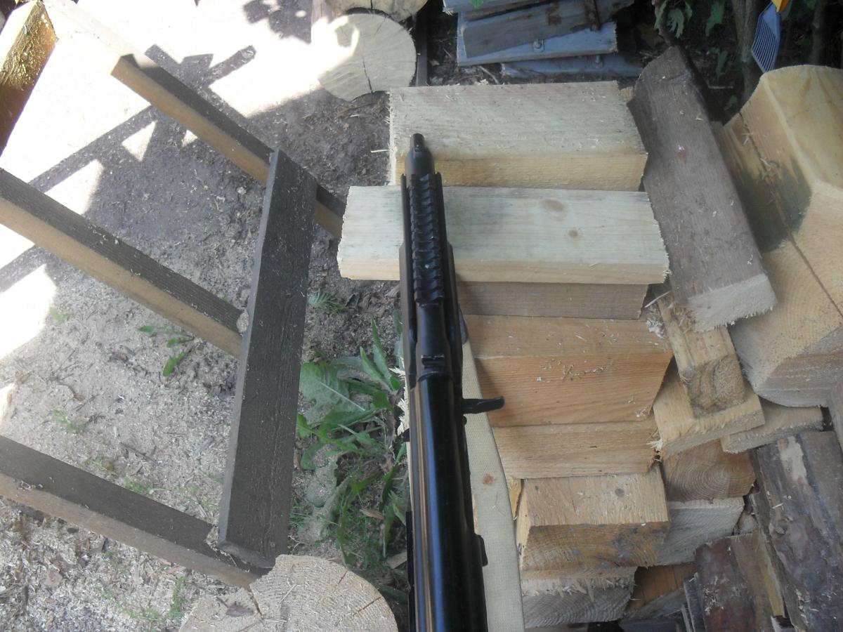 коротенький карабин в калибре ,308 или 7,62 на 54, закрепив на пазах для прицельной планки и казеннике ствола на самых низких кронштейнах, так, чтобы при вскидывании ружья цель попадала точно на перекрестие!