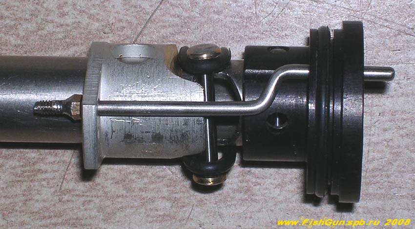 У меня к поршню аргумента нет претензий, не смотря на то, что 50% выстрелов происхлдят без вылета гарпуна из ствола. И качаю я 25-27 кг по весам. Были недопонимания с линесбросом, но после установки аммортизатора проблема ушла. Насчет резинки и шептала, я заменил резинку на кольцевую пружинку от автомобильного сальника по причине не фиксации гарпуна. На двух других аргументах стоят резинки, пока работают.