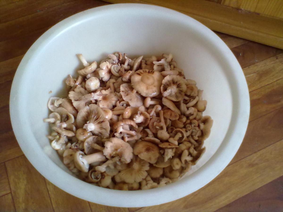 Ну дабы не смущать Зорьку и шашлычников, собак, на привязь, а сами, режем свежие молочные опята.