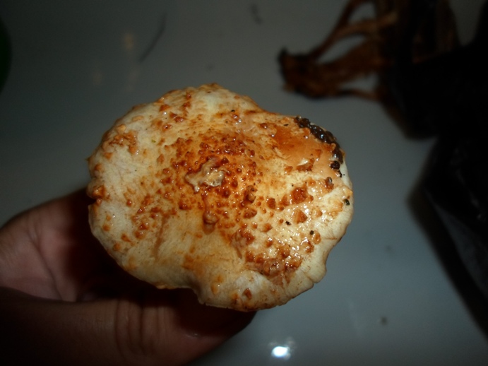 Как видите, этот гриб весь, "как ёжик")) порос чешуйками. И по размеру превосходит обычный осенний опенок.