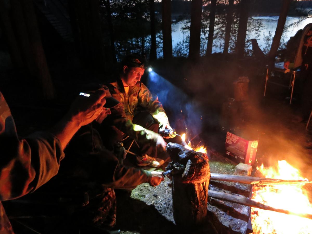 Всем спасибо за встречу, ну а барану за отличные блюда из него!:ag: Я с Андреем (Plastun_spb) добросовестно изучили под водой большую часть озера. Вода, как и предполагали, торфяного цвета. Видимость отвратительная! В юго восточной части озера чуть получше, на просвет до метра. Там и были обнаружены две щучки, грамм по 500-600, которые благополучно смылись! Мелочи в тростнике много, ну уж очень мелкая! После шестичасового заплыва, пустые, но с чувством выполненного долга вернулись на базу, и как раз вовремя, подавали горячие блюда из конины и баранины! Еще раз, всем огромное спасибо за встречу, а Всевышнему, за погоду!