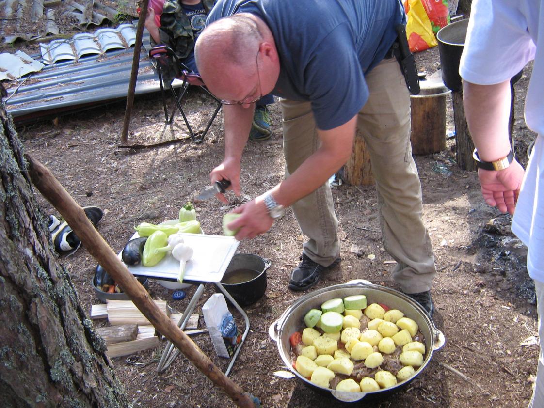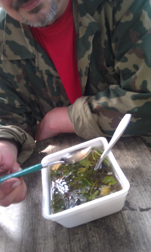 Саша готовил Дамламу (или Дамляму, кто как говорит), это блюдо Узбексукой кухни. Основной особенностью дамалмы является то, что все входящие в её состав ингредиенты не подвергаются предварительной термической обработке, а готовятся все вместе, одновременно, наполняя друг друга своими соками и ароматами. Главное условие — не передержать на огне овощи и не дать им превратиться в кашу. Бараньи ребрышки, морковь, картофель и даже капустные листья в настоящей узбекской дамляме и после полутора часов, проведенных в казане, выглядят эстетично, а бульон остается прозрачным. А главный секрет — качественное курдючное сало. Тогда не только вид, но и у вкус у блюда выходит потрясающий.КАК называется блюдо
