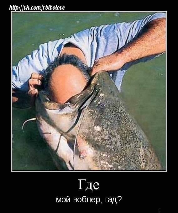 Но с вечера при выезде у 3 буя была одна поклевка, о которой я рассказываю в конце, чтобы не утомлять людей баснями. Короче, при выезде я распустил воблеры, и мы медленно стали уходить в Ладогу. У 3 последнего одиночного буя вдруг спиннинг у меня загнуло, я подумал зацеп и стал подтягиваться к месту зацепа, леска 0.3 , так что порвать ее - элементарно, если не дать слабину, вдруг зацеп немного поддался, но сдвинуть от дна его так и не мог, лодку штормом сносило ниже «зацепа» и снова подымались к зацепу на моторе и пытался поднять этот груз, который никак не хотел выходить на поверхность, пару раз он явно уходил так что леска пищала как струна, приходилось пальцами стравливать катушку и снова когда тяжесть и рывки прекращались медленно по 20—30 см вываживать непонятного монстра из глубины. Прошло 30 минут, но пока силы были равны и тот на том конце не хотел никак сдаваться! Подходили снова и снова, волной стаскивало снова ниже "зацепа" и как могли, чтобы не оборвать леску, подходили и снова пытались вывести рыбину на поверхность, и вот в один момент по волне вроде подалось и на поверхности появился хвост. Неужели какое - то чудовище, или русалка, подумал я, на щучий он не был похож, да и судаковый тоже, хвост был почти 2 метра от лодки, но где же голова? глянув вниз рядом с лодкой, я увидел башку, от которой встали волосы дыбом и кепка поднялась на голове. Оказался здоровый сом под 2 метра, который уже появился на поверхности, и снова пытался уйти на глубину. Как затащить его в лодку? Такую махину( до берега было под 1 км) неужели тащить его не мель, как в старину и колоть на мели вилами!! Но где взять вилы?