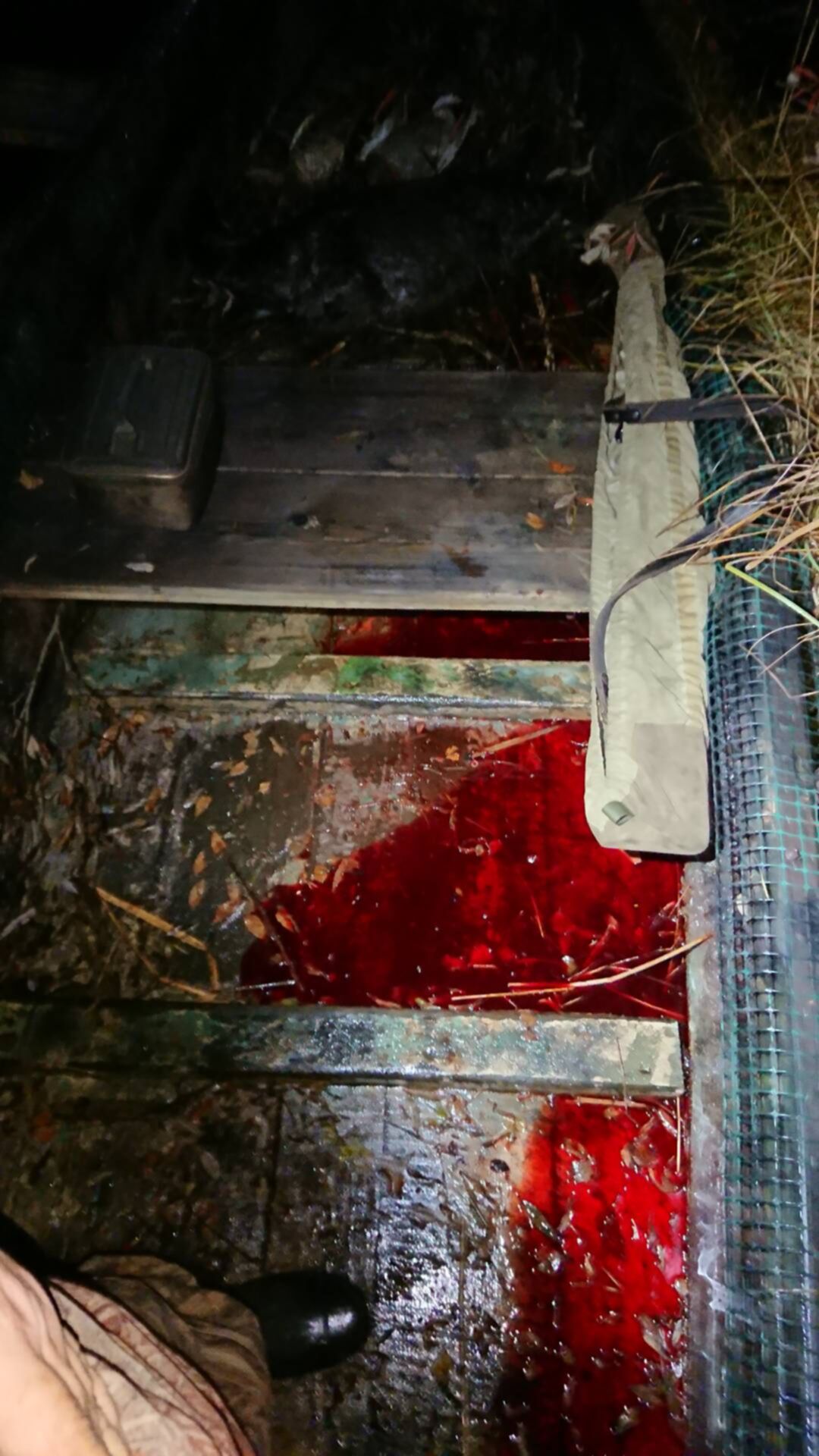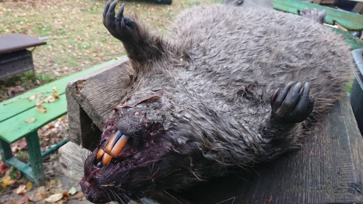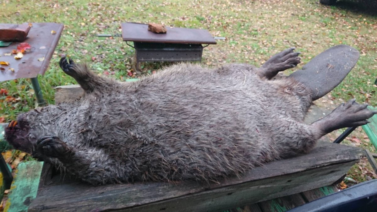 Пока искали уток после очередной интенсивной головокружительной вечерки, удалось бобра загнать на лодке, весь вечер грыз рядом где то, и наконец смог добыть. Только на днях заказали бобра, те кто уток покупали партию большую для соревнований собакам и такая удача, такой крупный экземпляр, со спущеной кровью аж на 26,5 кг потянул, это значит с кровью ближе к тридцатке, пол лодки натекло пока плыл к берегу.