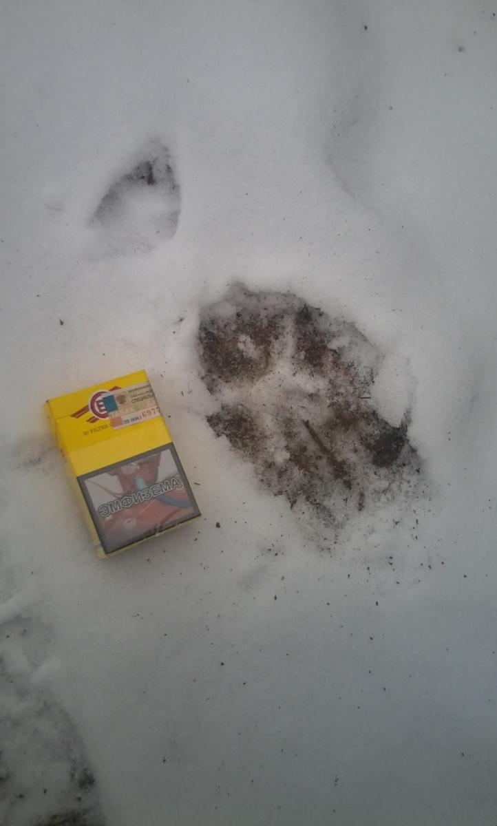 Не догадался для масштаба положить что то, уже уезжали, ночью дело было. В длину след см 6-7, в ширину 5-6
