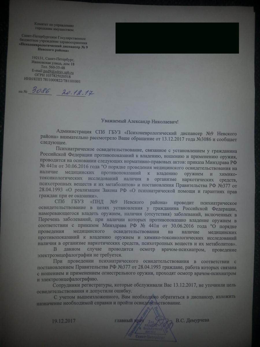 Выкладываю документ для тех, кто проходит медицинское освидетельствование у психиатров в диспансере Невского района.