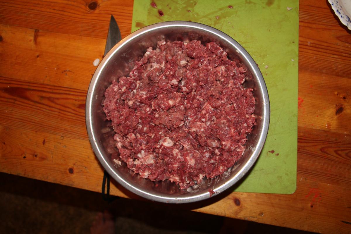 после чего я понял что так я и до утра не успею и перекрутил остатки через мясорубку с крупными отверстиями.