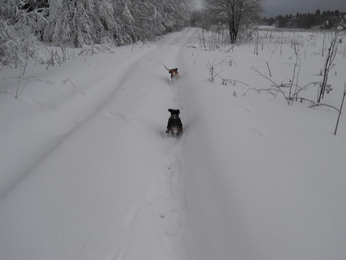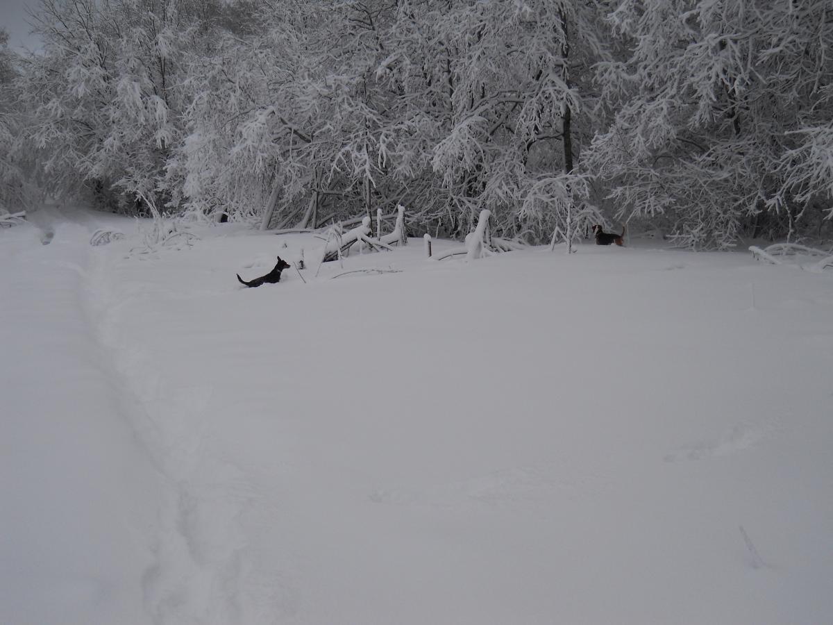 Сегодня, прогулялись великолепно! Давно не видел столько следов зайки, Невский пр. - отдыхает! Огорчило одно! Снежиком изъезжено - ВСЁ! Зайку душили, как могли. Подъезд к чепыжнику, обход, проход, + две собы и, только гонный след! Следов стрельбы, крови - не видели! Что внушало надежду поднять шумового из бурьяна. Обрезать кормёжку, просто было не реально, на столько всё было путано! Один входной - три выхода, четыре входных - один выход. Крутили, топтали, малики все проверили - нет зайца и всё тут! Обрезали три крайних следа от дороги, все зайцы оказались за дорогой, до этого ещё три следа встречали которые уходили за шоссе. Крутанул н/п, подъём и заяц ушёл за шоссе! Но как он летел - офигеть! Давно не встречал такого, ой, такой скорости у зайца! За шоссе маханул так, что думаю - так, что не каждый водила его видел! Ушёл! Я, только на секунду отвлёкся и ... усё! Нету - зайки! Подъём был 25 - 30 метров. Попробуем взять его с утра, на другом поле.