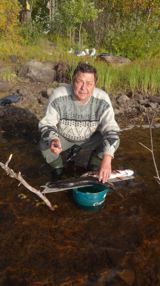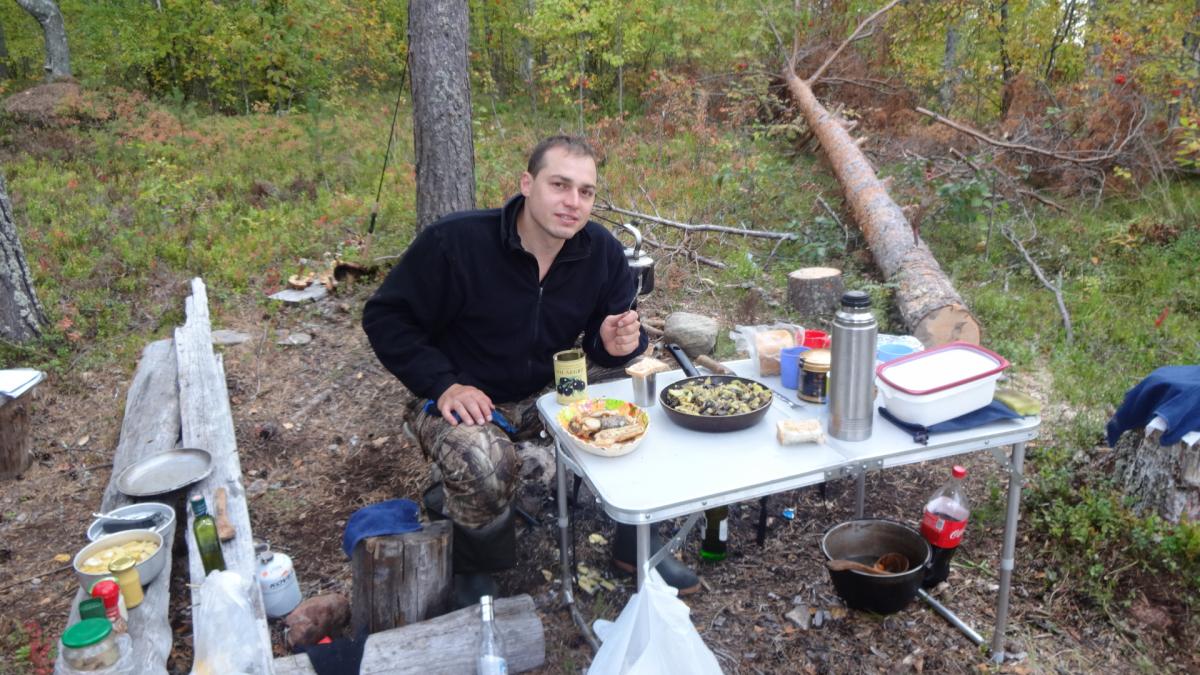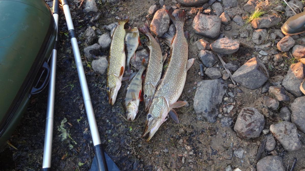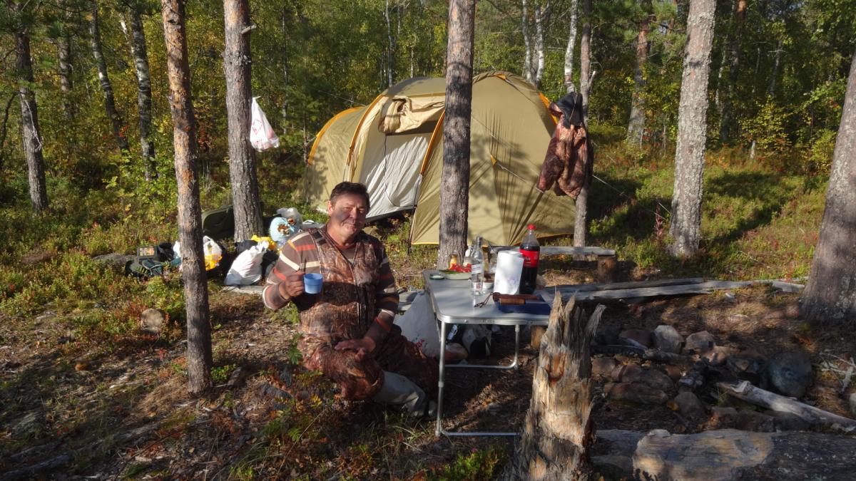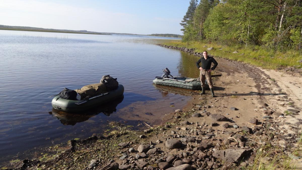 Уже давно с отцом собирались посетить карелию. Именно заповедные ее уголки. И в 2014 году решились. 15 сентября он приехал из Казахстана в питер и уже 16го мы выехали. По совету однофорумчанина, выбрали озеро в кемьском районе. Ехать до него 900 км. Но так как давно с отцом не виделись, дорога прошла за разговорами. И в 9-00 мы были уже в петрозаводске. Только к 10-00 удалось взять путевку в УОП...Я оплатил 520 руб, но в путевки вписали все, чтио шевелиться. УТКА,ГУСЬ, ВАЛЯ,ГОЛУБЬ, РЯБЧИК, ТЕТЕРЕВ,ГЛУХАРЬ, ЗАЯЦ, ЛИСА, ЕНОТ и че-то еще было...По пути отец восхищался пейзажами. DSC01877.jpgDSC01879.jpgDSC01880.jpg. В казахсьтане у нас лесостепи, А тут гористая местность севера. После 900 км, паромная переправа (150 руб с приезжих, 100 с местных (так нам рассказали) ЗАбегая вперед скажу, что туда мы заплатили 150 , обратно 100...Оказывается, это были разные оператры парома и 1 из них 50 рубликов заныкал. ПЕреправились, и 5 км ехали до ближайшей к озеру деревни, у бабули оставили тачку (за 500 р) и 3,5 км плыть по реке до самого озера. Лодочки у меня маленькие, а шмоток много. DSC01881.jpgDSC01882.jpg. Нашли небольшой бляжик у неплохого леса. И расположились. DSC01883.jpgDSC01884.jpgDSC01886.jpg. Конечно задобрили мать моржиху, деда-лесовика...Ипоехали ловить живцов. Ах, да, рыбачить мы собирались исключительно на живца. Я брал 2-3 блесн, но такой вид рыбалки меня не прет. Поначалу было трудно его поймать, но потом приноровились. Нашли где река протекает через озеро, и встали на границе потока и тишины. И тут начался бешенный клев. за час мы наловили 20 живцов, самый маленький грамм 100. Плотва, елец. Один раз даже щуку на червя зацепил, грамм на 800-900, но подвести к лодке не удалось. После 5 мин борьбы, сошла. Расставили живцов и к костру.