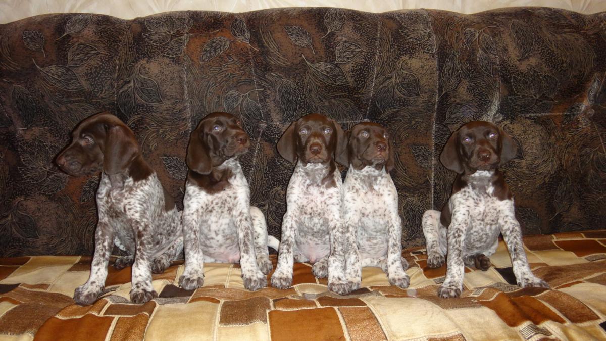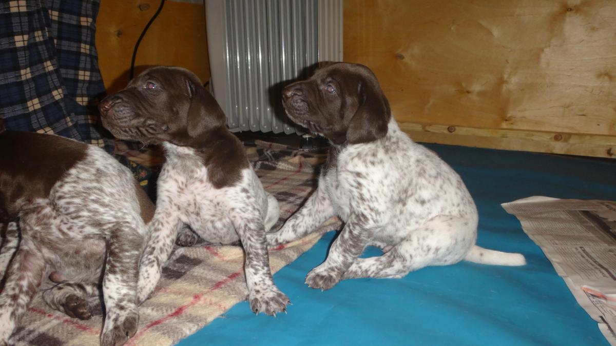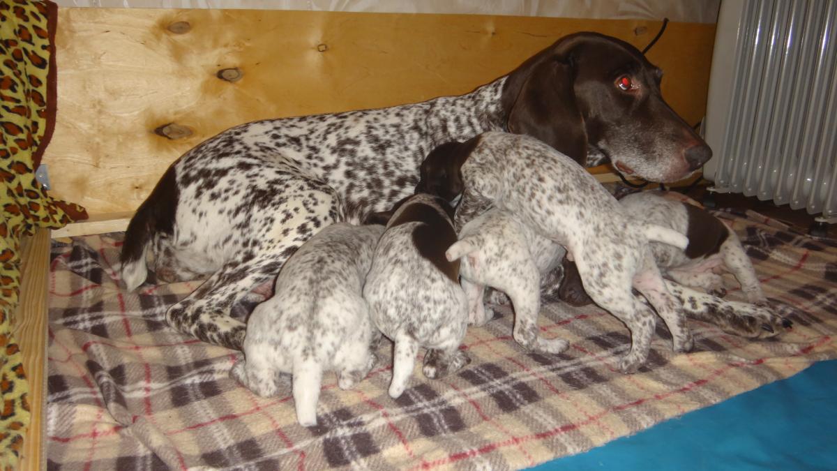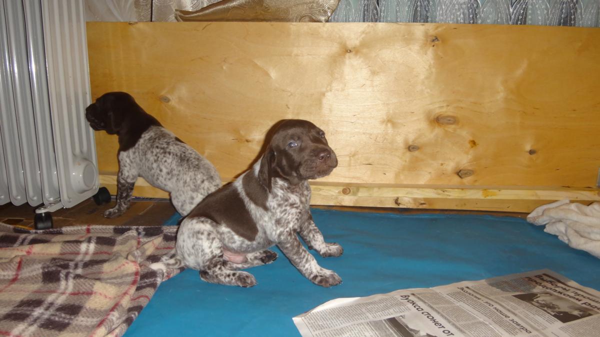 Щенята хорошо прибавляют в весе. Стал проявляться крап. По окрасу будут, как родители. надеюсь по рабочим качествам тоже.