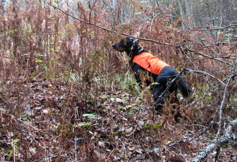 В традиционных местах птицы не было. А на лесистом склоне, на участке в четыреста метров Лакки продемонстрировал пять работ, но так как Гамма очень темпераментная собака , стрелять мне не пришлось. Темпера тура 0 градусов. Ветер северо-восточный.