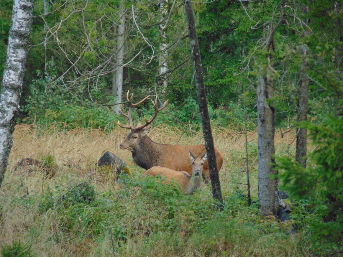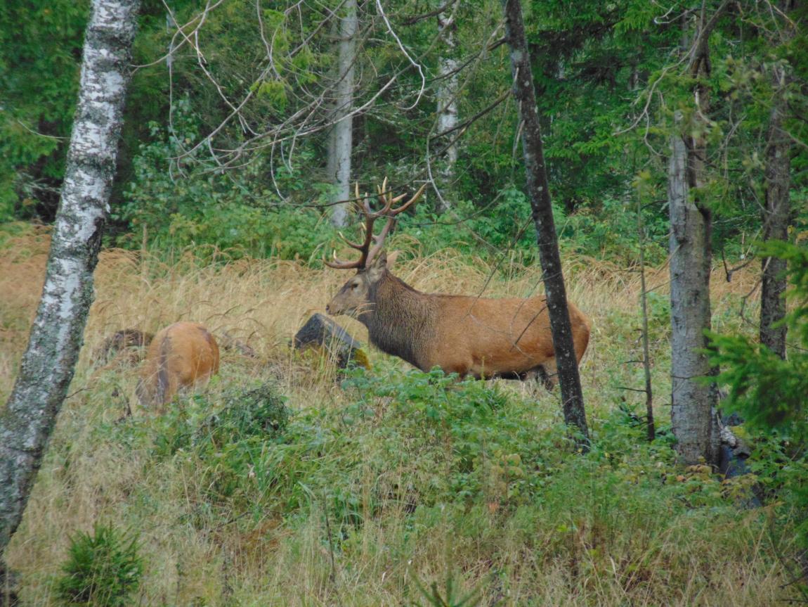 Не успел. Пока забрался, в ста метрах ходит только победитель поединка. Бык среднего возраста, с очень хорошими рогами. Ему ещё года три четыре подрасти надо. А где же "лузер". Тот тоже не далеко ушёл. Тоже "середничёк", рога на 14 отростков, с хорошими кронами на верху. Этому тоже расти.