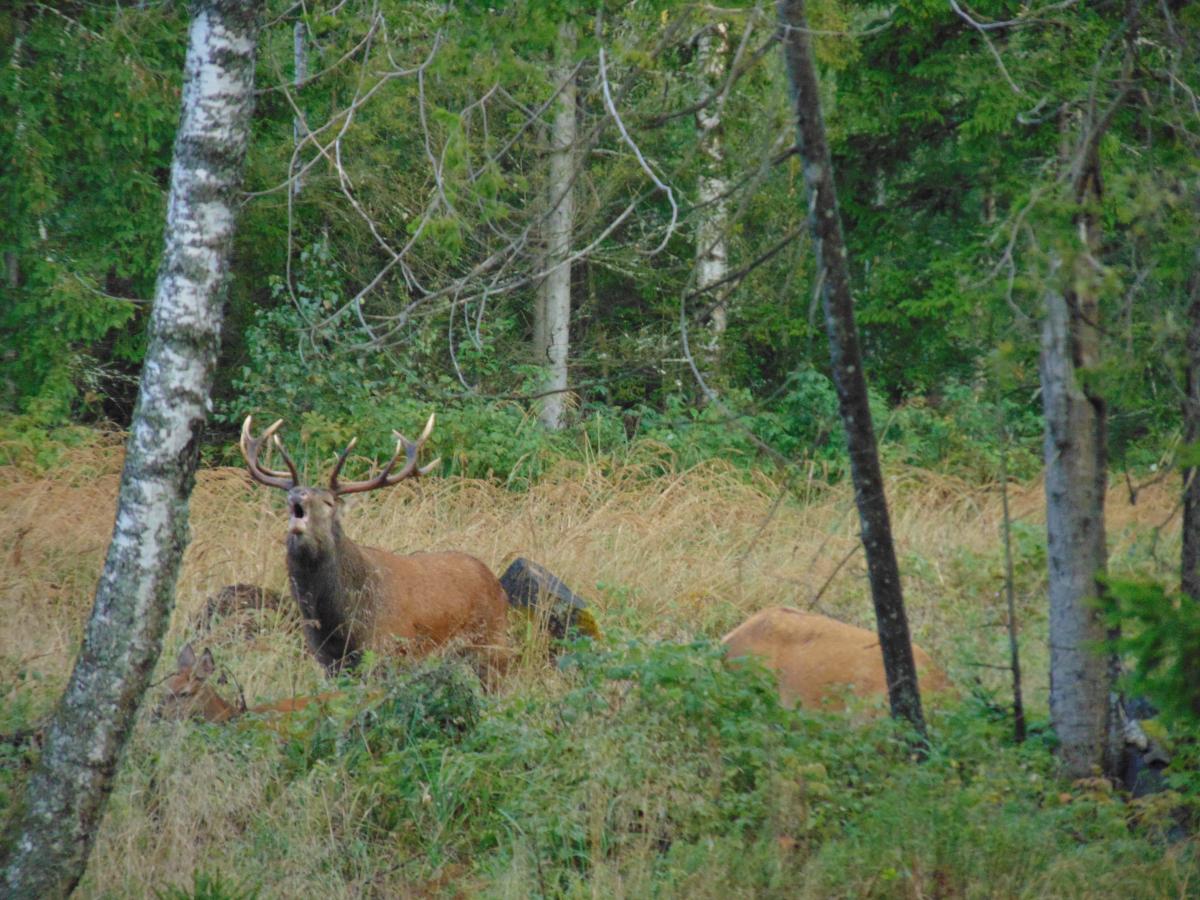 А олени вроде ни чего и не поняли. Бык ревёт, оленуха стоит, только совсем рядом лишний шум появился. Там пара бычков уходят, такие совсем молодые. От куда они взялись? Вроде всё просматривалось, а я их и не заметил.