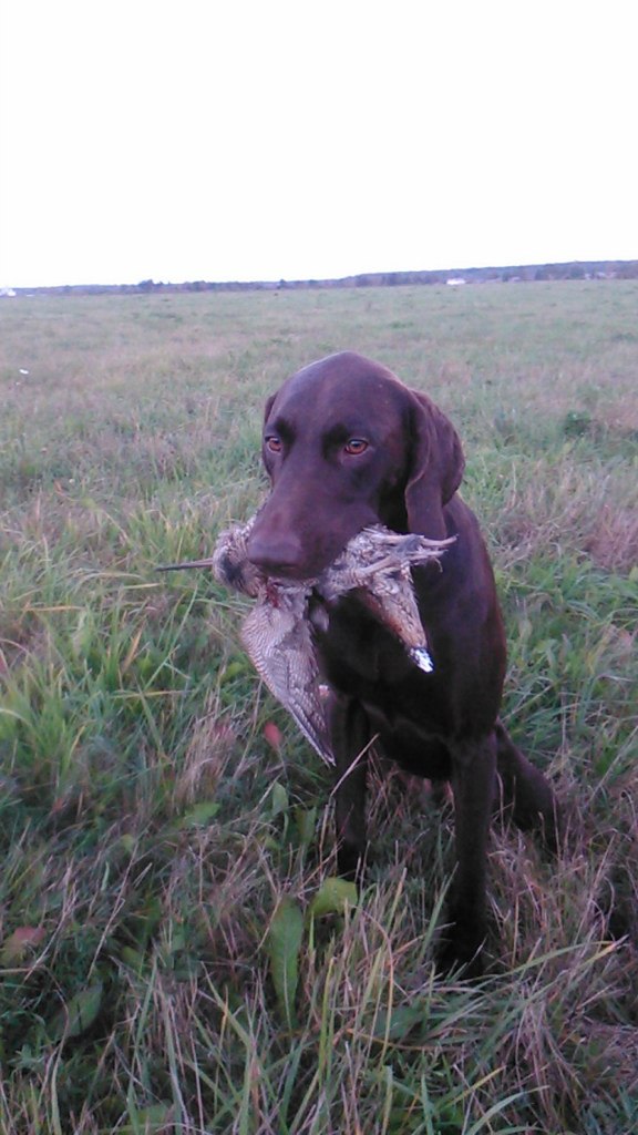 Да нет, подает. Поэтому у него есть 3 диплома по водоплавающей птице от разных экспертов, это раз. во-вторых, традиционно открываюсь в августе по утке на оз. Ильмень, кто был тот знает какие там камыши и как трудно найти даже чисто битую дичь без собаки.