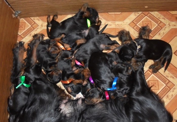 2. Количество щенков (кобелей/сук): 5 кобелей и 5 сук.