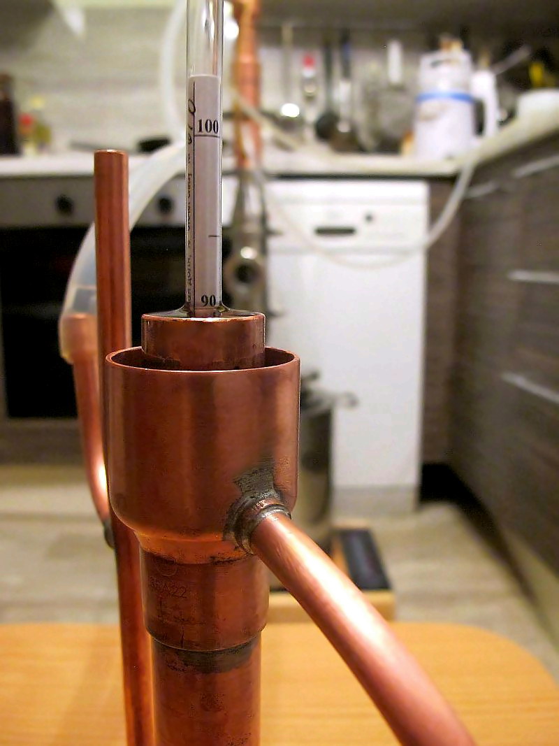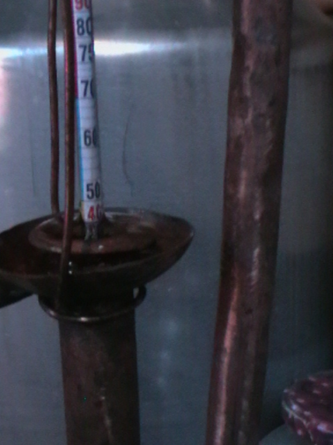 Механический градусник для отопления. Как ни странно, но брага закипает при 98*, и кипит при 100*. Раньше ничего не капает. как бы ни врали на форумах самогонщиков. Хотя может градусник врёт?