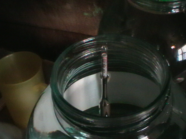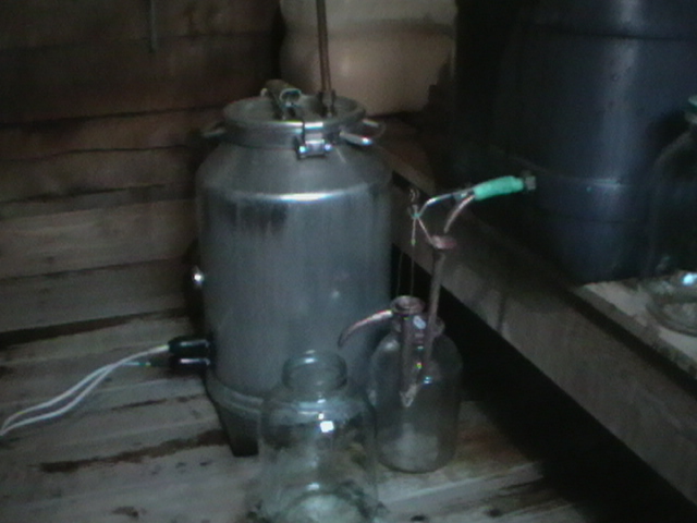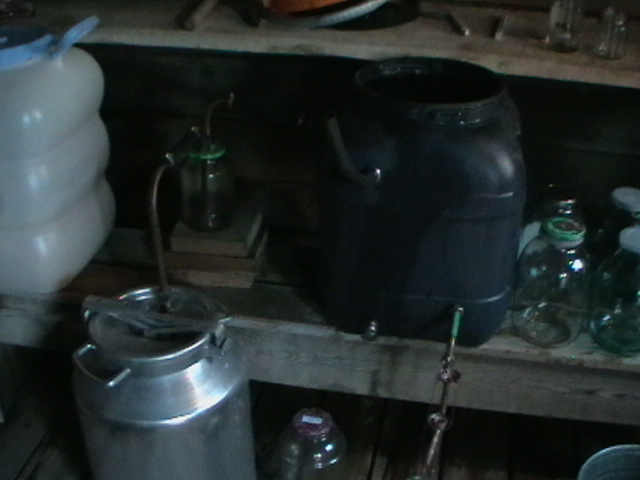 Потом весь продукт сливаю в общий бак на 32 литра, тщательно перемешиваю. И развожу отфильтрованной (фильтр барьер)водой до 50%. Потом опять разливаю по банкам объёмом 3 литра. Это итог работы аппарата за 7 часов. 6 трёх литровых банок и фляжка на 0,5 литра.