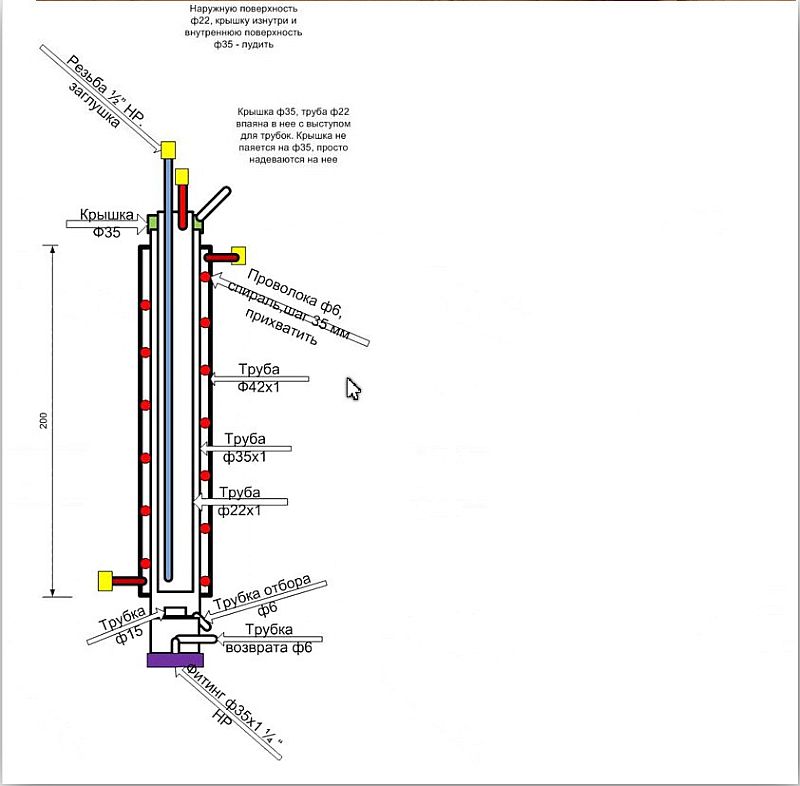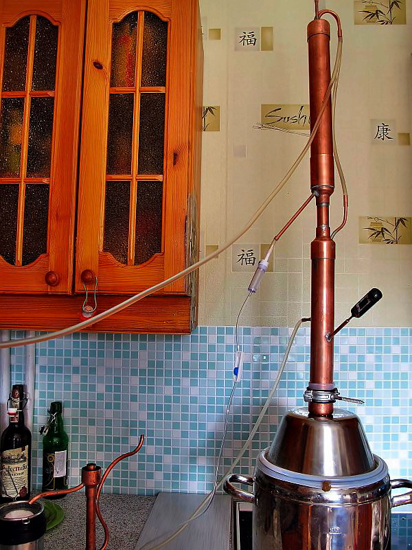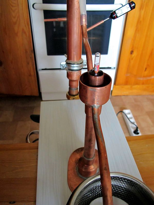 Потом, если уж хочется про медь для особых гурманов, то никто не мешает на последнем этапе воткнуть слив дистилята из медной трубки, просто удлиннив слив этой трубкой.