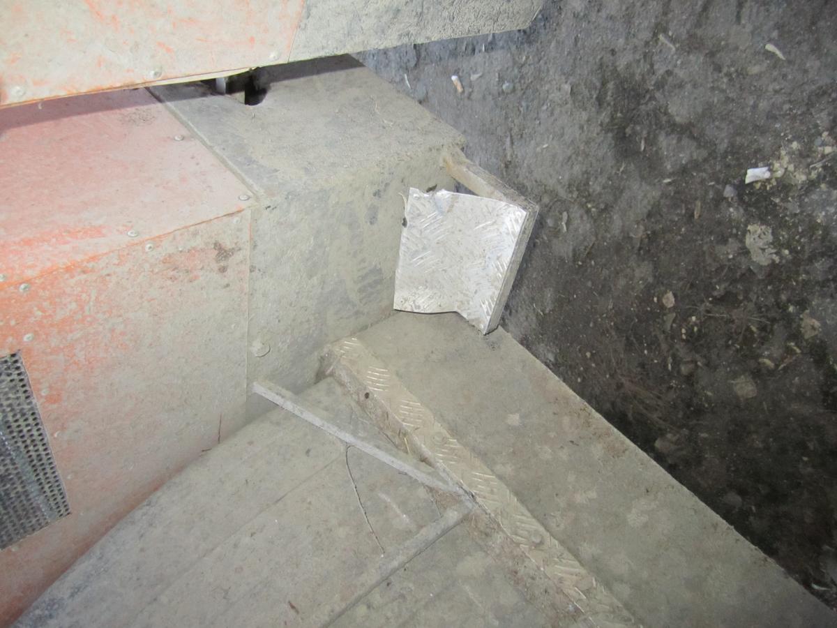 Въезд на горку, куда летом залетал. Положили железа 350 кг. Колесики сразу просели. Ну их сразу и накачали.