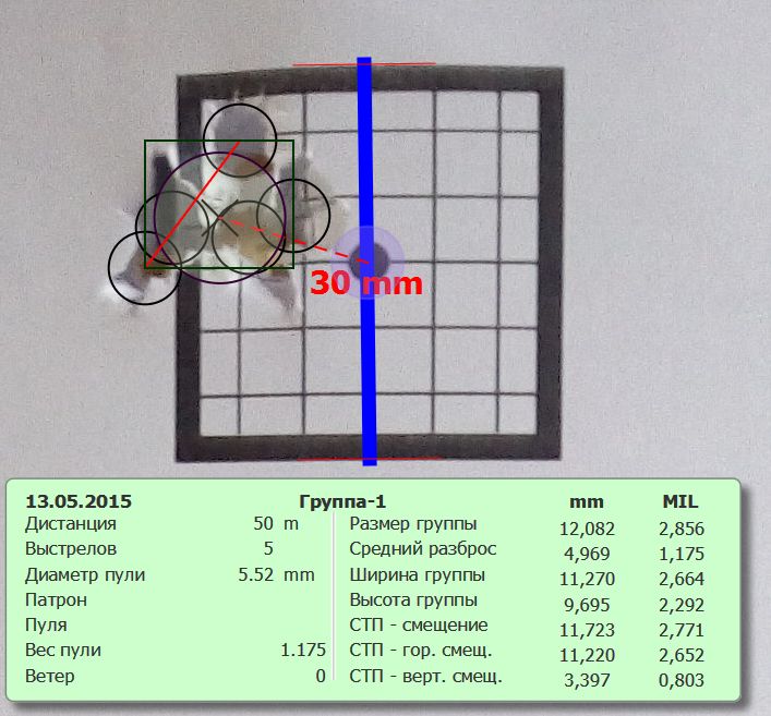 - По желанию можете установить точку прицеливания, тогда будет возможность вычисления смещения Средней Точки Попадания (СТП)