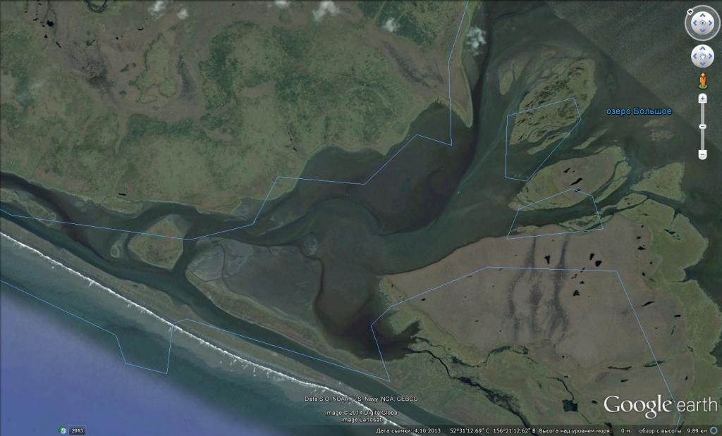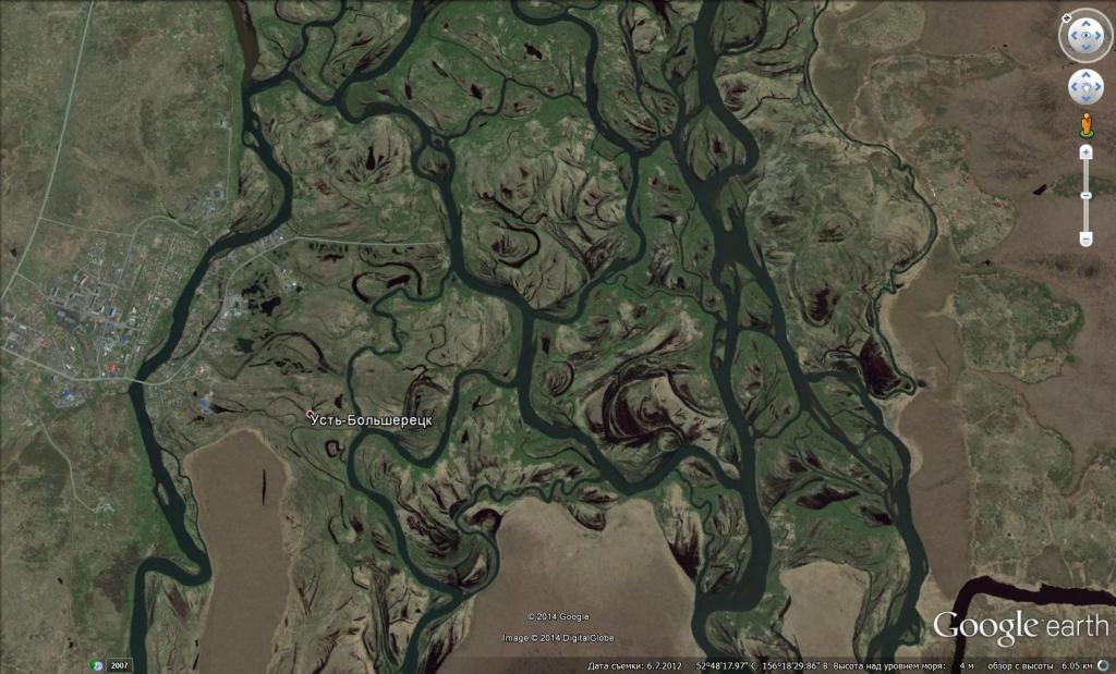 Здесь тоже предпочтительнее космоснимок (если он конечно не зимний и не закрыт облаками). Любое переувлажнение, плотность зарослей кустарника, глубину прибрежной полосы, опасные ОТМЕЛИ (!!!) и удобные места для установки сетей - всё это легче дешифрировать с космоснимка, нежели с карты.И по тундре нужно ориентироваться