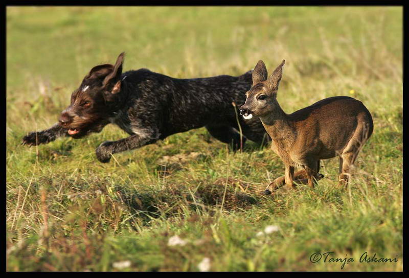 Кроме того, с собакой охотятся на облавных охотах по лосю, косуле, оленю. Некоторые собаки гоняют с голосом зайца, но редко дольше 1 круга. Лают пушнину на дереве, но отследить по верхам как лайка не могут. Охотятся на выдру, бобра, норку не хуже лайки. Апортируют все что упало вплоть до лисы и зайца. Добирают подранков по косулю и подсвинка включительно.