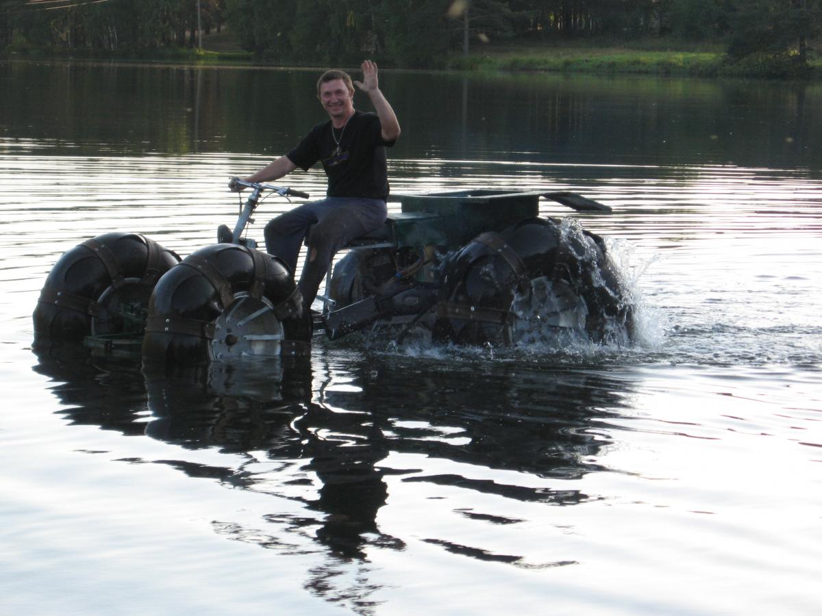 Снегоболотоход ямфибия,на шинах низкого (регулируемого) давления,несомненно одна из лучших конструкций.Но она для открытых пространств.Его младший брат полноприводной мото 2х2 на превматиках(мото 2х2 в чемодане),отлично себя чуствует в лесу,но плавает только на боку после утопления хозяина.И на топком болоте,потеряв равновесие,нет уверенности,что под сапогом не окажется бездна.