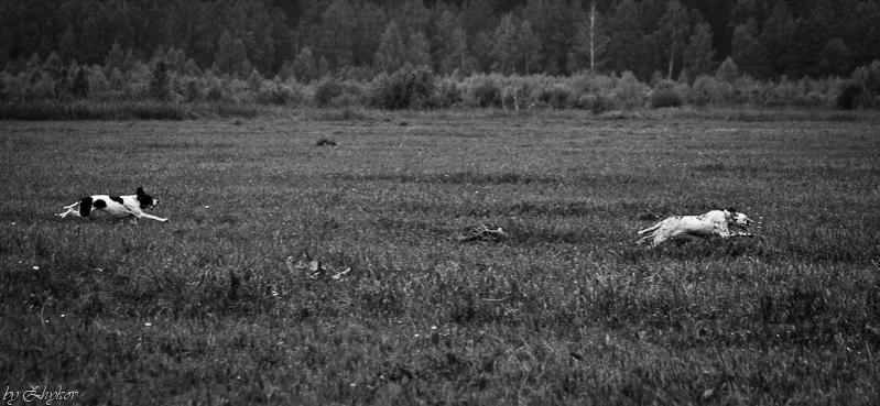 Если говорим о парном пуске тут главное что бы собаки не гоняли друг друга или игрались. Причем на мое имхо это не тренируется это врожденное.