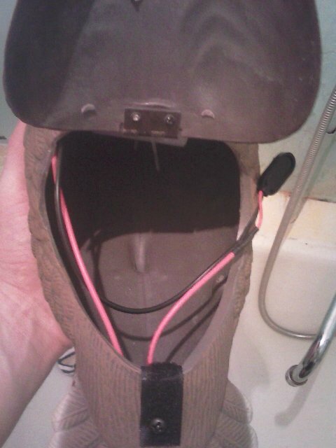[FONT=Verdana, Times New Roman, Times, serif, Arial, Tahoma, Calibri, Geneva, sans-serif]Провода идущие сверху (черный "-" и красный "+") от мотора. Минус сразу идет к батарее, плюс как всегда подключен к кнопке ВКЛ/ВЫКЛ