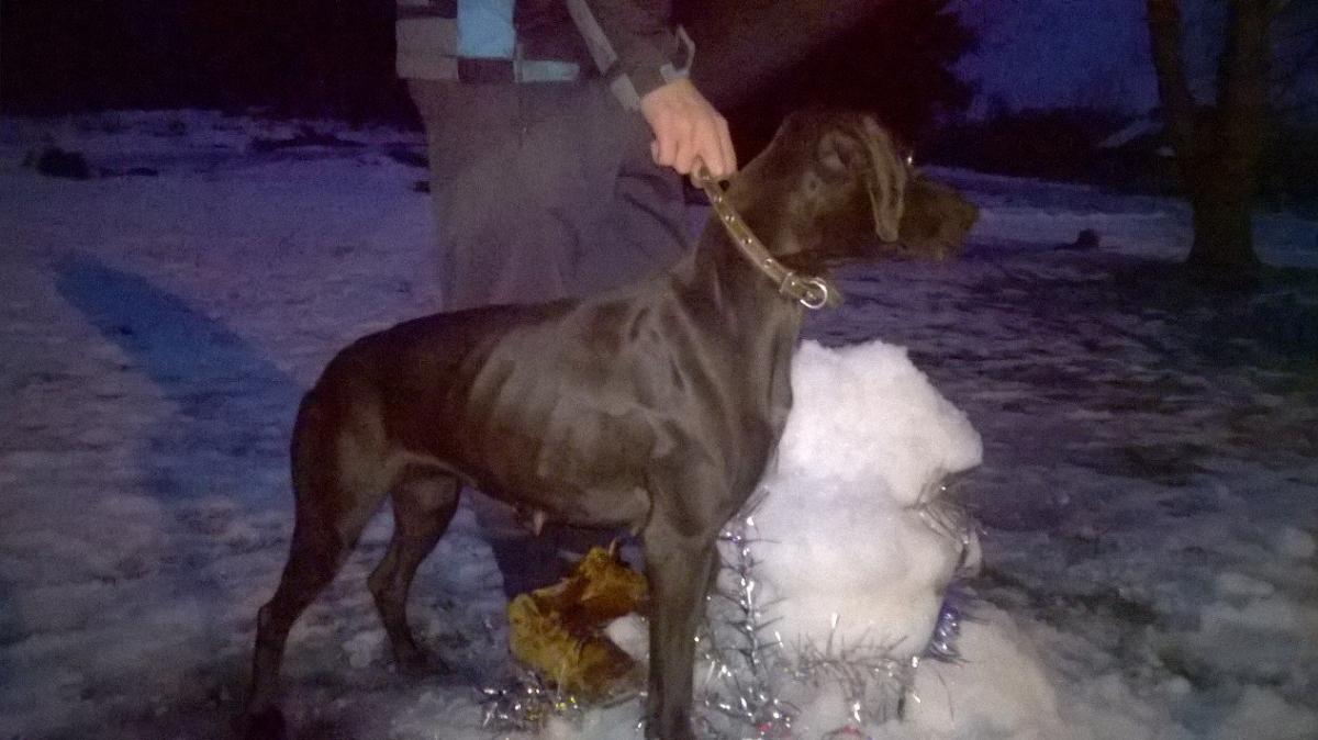 30.12.2014 в поселке Вещево был найден веймаранер или пойнтер шоколадного окраса, сука. Коричневый кожаный ошейник с кнопками. Давайте поможем ей найти своего хозяина, возможно он переживает, ищет ее!!! СРОЧНЫЙ ПЕРЕПОСТ!