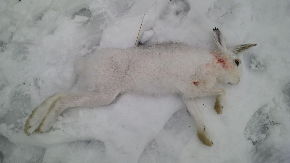 У мужиков позавчера, вот это первый заяц, ушел за 6 км (беляк), что не характерно