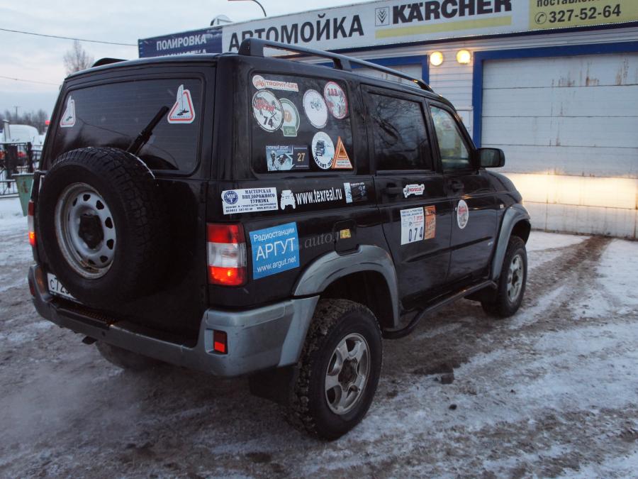 Лебедка Спрут Спорт, защиты баков, низовые (от дизельного) главные пары, шкворня на подшипниках, сапуны выведены под капот, есть кнопка отключения АБС. Небольшой лифт подвески, для установки МТ колес 33" (285/75R/16 Nokian Vatiiva, отдаю в комплекте, на литых дисках). Шноркель не ставил из принципиальных соображений, поэтому и не тонул.
