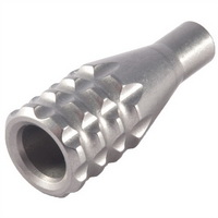 SPECS: Machined stainless steel, matte gray. 5⁄16"-24 tpi threads. Sniper - 2.125" (5.4cm) long, .850" (21.5mm) O.D.Target – 2” (5.1cm) long, .720” (1.8cm) O.D.