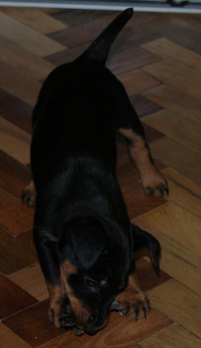 А вот на пикинеса охотится уже пробовала, в холку на мертво почти вцепилась, потом еле шерсть из пасти отобрал