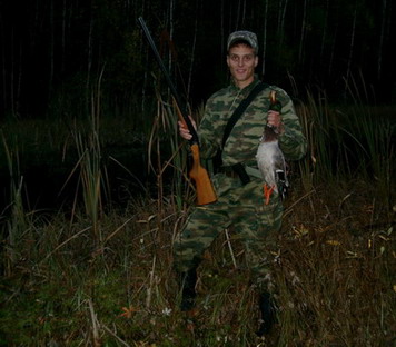 Вечер пятницы и вся суббота были посвящены ходовой охоте на северо-западе московской области в компании с Картечью. На всех водоемах утка полностью отсутствовала. Гусь также не был замечен, хотя по словам егеря, он всё-таки шёл несколько дней назад :3: Неспешно пересвистываясь с рябчиками, которые хоть и отзывались, но никак не шли на манок, набрели на небольшое лесное болото, где подняли четырех кряковых и Миша метким выстрелом взял шикарного, полностью перелинявшего селезня :yelclap: Вечером над тем же болотом пролетела пара уток, которых удалось развернуть манком, но плюхнулись они на воду вне поля зрения (было уже совсем темно) и мы решили оставить их в покое.