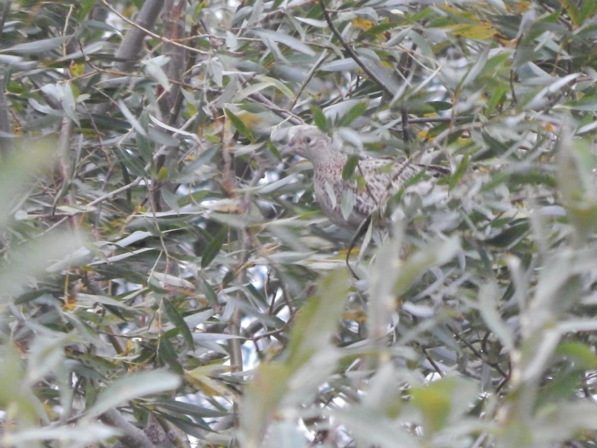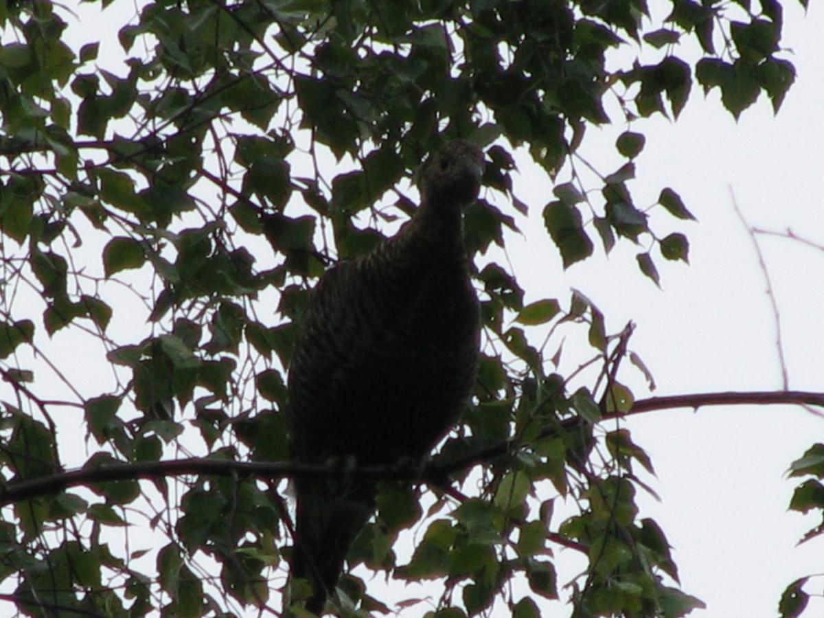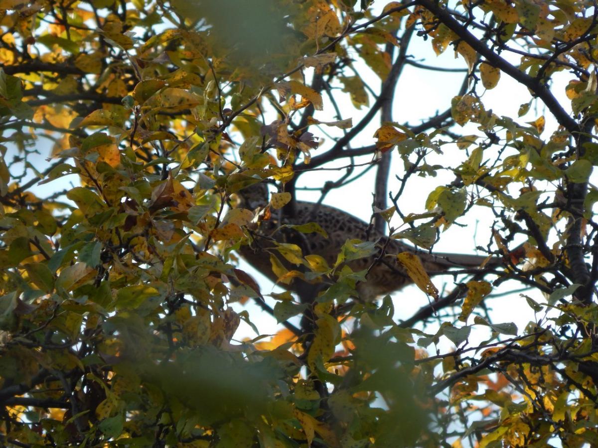 фазаненок из позднего выводка спасается от лаек на вербине.