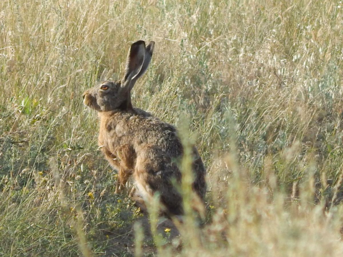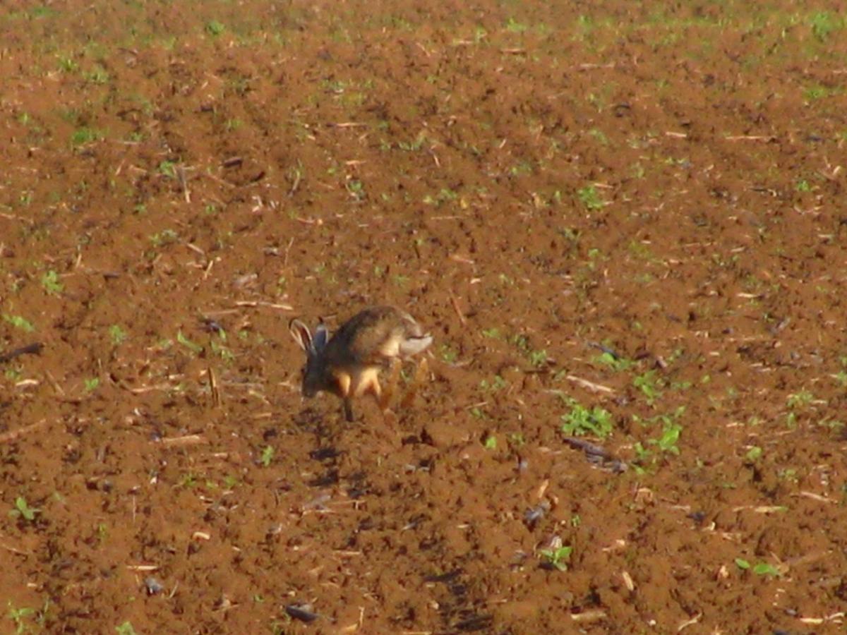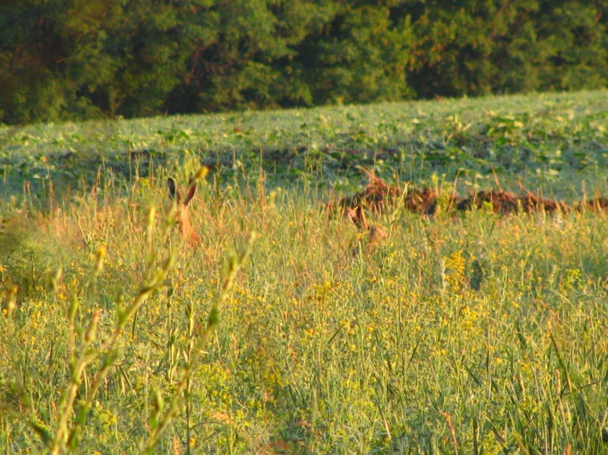 пара молодых русаков жирует на краю поля