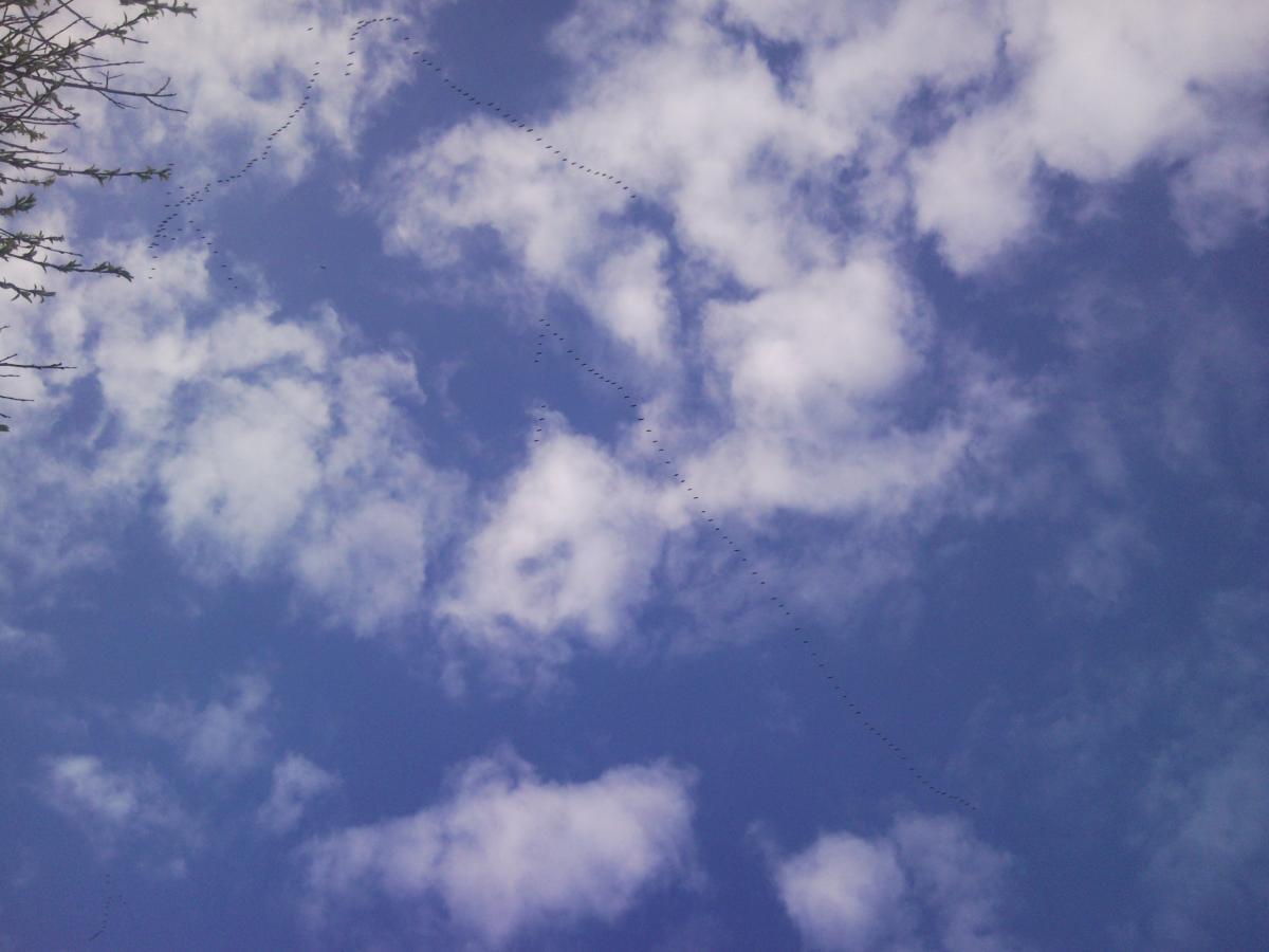 Одновременно в зоне видимости было по 5-8 огромных стай. Гусь шёл узкими цепочками, широкими шеренгами, многоярусными этажерками и просто клиньями.