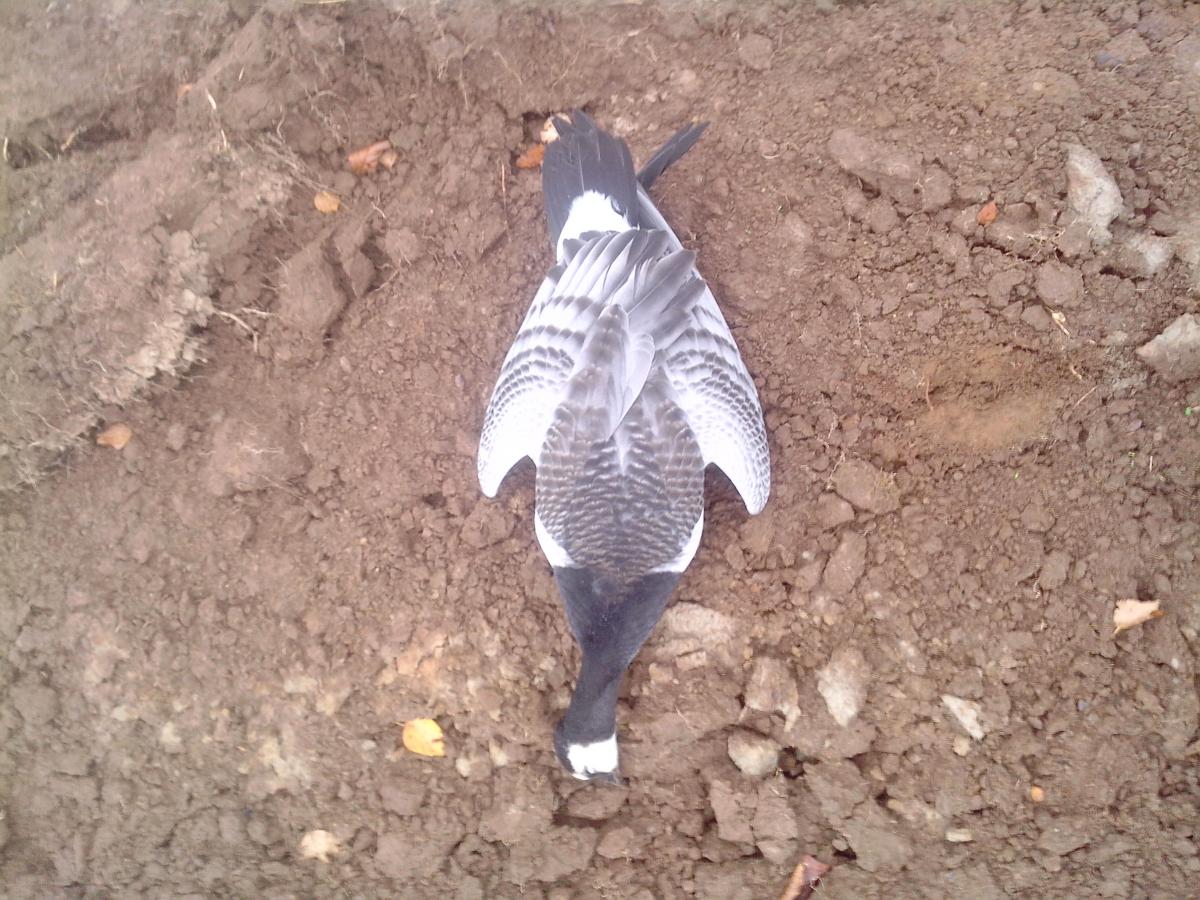 До работы проскочил по полям. Редкие стаи и высоко. Хотя вчера до поздна летел хорошо. Но на одном паханом поле заметил стаю казарки. Удалось подкрасться на выстрел. В результате одну взял! Можно считать, что открылся!