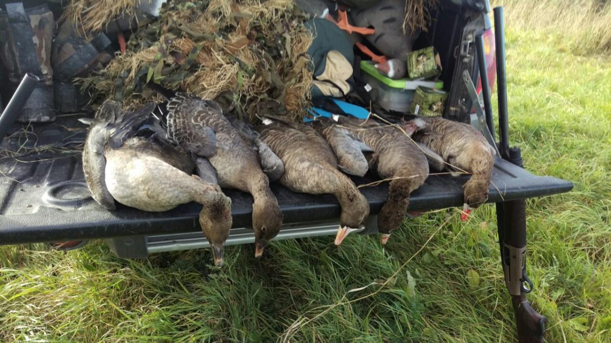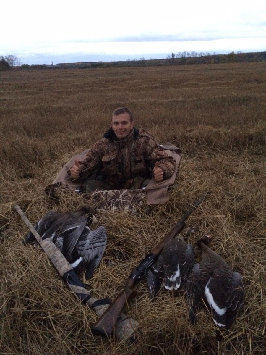 наши поля некогда битком набитые гусями,уже давно не возделывались в этом все и дело,когда они обрабатывались я даже скрады не копал,чучал не выставляли манком не манил,гуси ходили одним и тем же коридором и высота была 20-30м.Кстати с кем то возделанного поля Вас могут и попросить.что касаемо времени то от момента выезда из дома до готовности к охоте(с учетом расстановки) составляет 25-30минут,есть гусь хорошо,нет пол часа и ты дома.С годами все больше и больше тяготею к комфорту.Да а крайнего этой осенью гусика взял вообще в 200м от дома,раньше было классное поле выглянешь в окно а оно от гуся шевелится,но разрастающаяся как на дрожжах деревенька уменьшила его почти в половину,и теперь там крайне редки присады...Все больше "халявил" и искал уже кем то возделанные поля