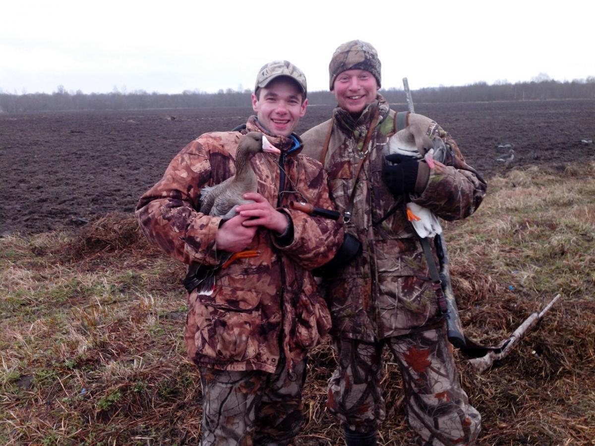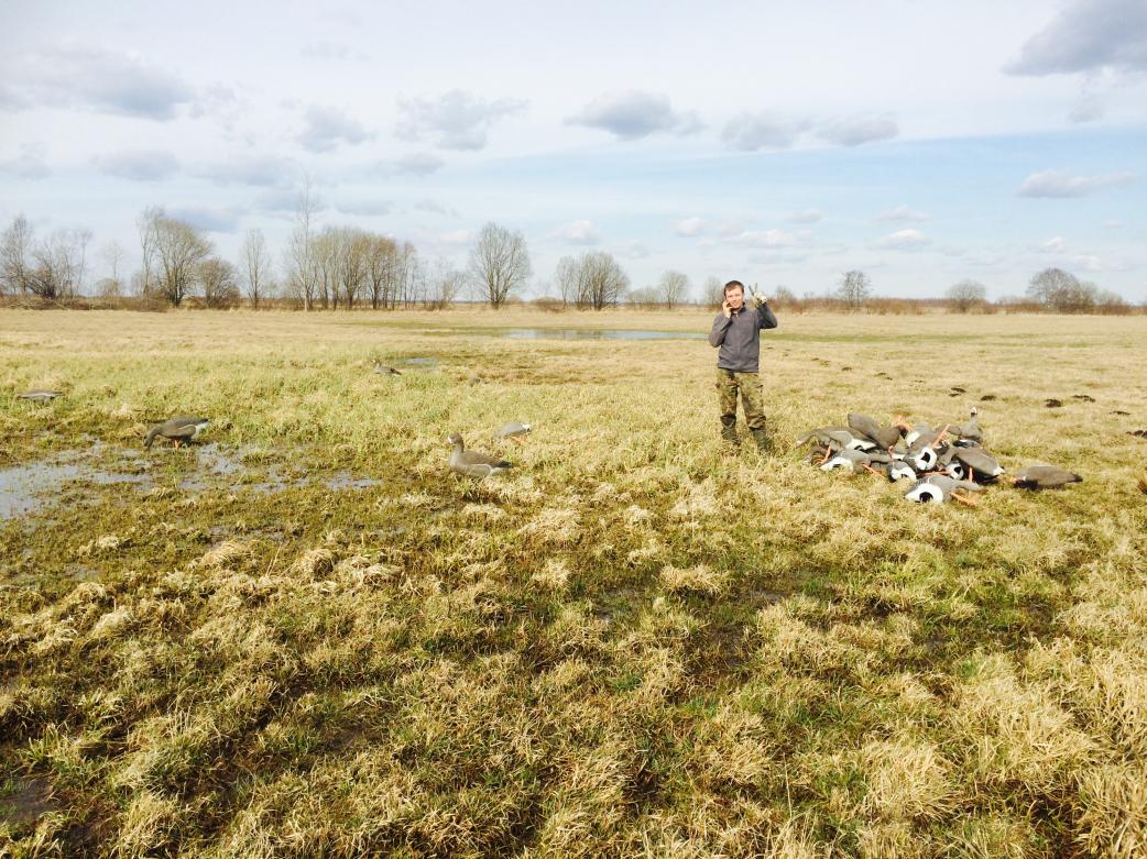 Утро в псковский. Я Ринат и саня угомонили пару белолобых. Гуся не много. Холод