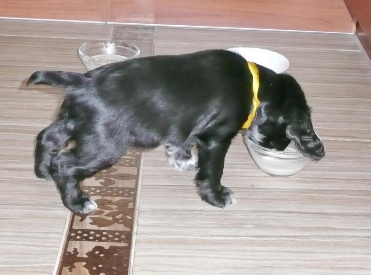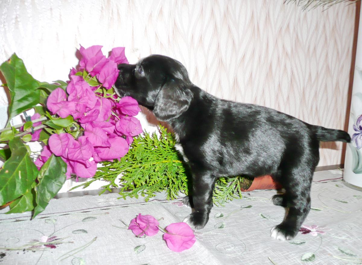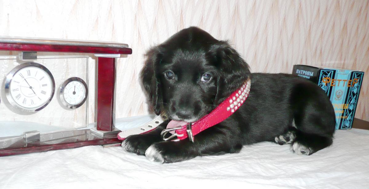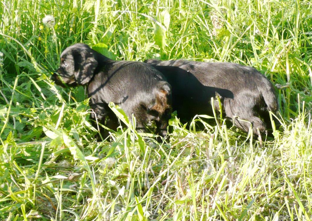 Остался один чёрный щенок Диомид (Дёма), самый крупный щен в пометёте. «Полевой выход» :ab: щенков, Диомид и Даяна.