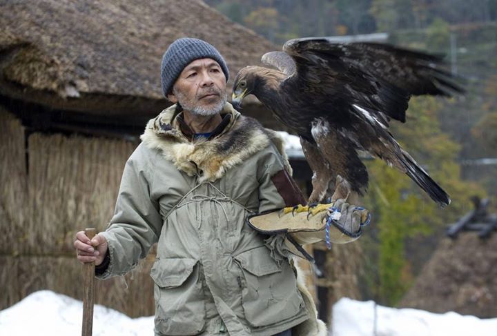На фото запечатлен последний соколиный охотник Японии Хидетоси Матсубара.