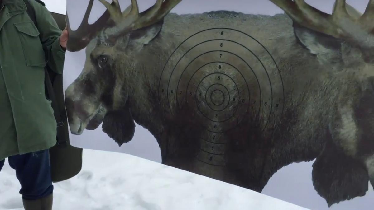 У меня получается, что если лось медленный (2,5 м/с), а скорость пули 400 м/с, то где-то в районе бороды должно быть упреждение.