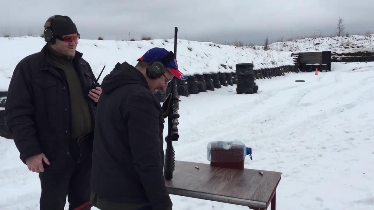 Леха Патрушев-забыл перезарядиться при движении слево-направо,сказалось новое ружье,переход с п/автомата Бенелли на Блайзер болт...Ладно это практика,больше такого точно у него не будет:)