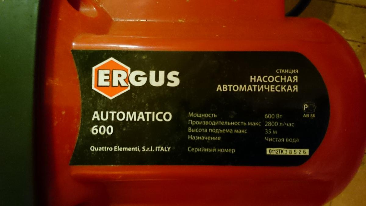 Продам автоматическую насосную станцию ERGUS AUTOMATICO ITALY 600w