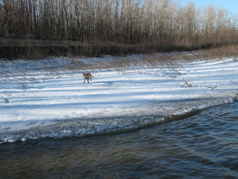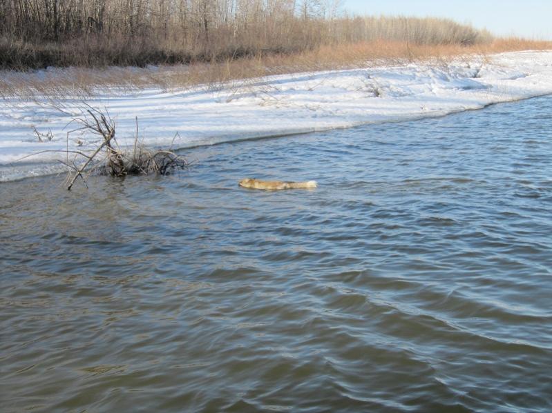 . И тамошние самцы уже должны начать линять - признаков нет. Нет на шкурке и выгрызов кроющих-остевых волос от драк лисьих. Волос жирный - видно по воде и значит силёнок не теряла. Значит явно самка и ...думал что лисы воды избегают.